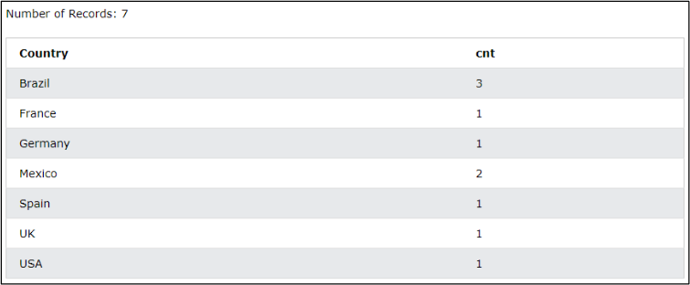 group by Country;