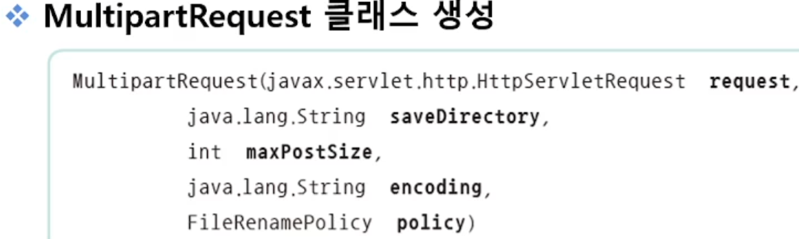 MultipartRequest multi = new MultipartRequest(request, realFolder, maxSize, encType,