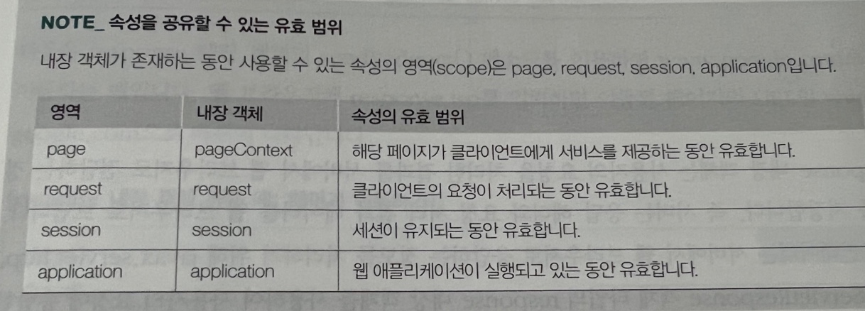 1. page 영역 : 한 번의 클라이언트 요청이 오면, 하나의 JSP 페이지가 응답된다.