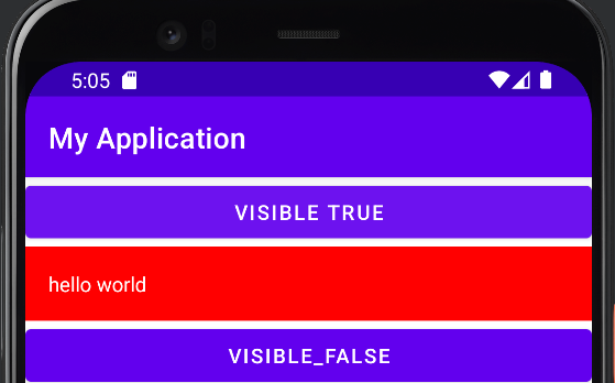 그림 1은 초기 화면이다. 그림 2는 VISIBLE TRUE 클릭 시 hello world가 출력되는 모습이다. 그림 3은 VISIBLE_FALSE를 클릭 시 다시 해당 텍스트가 보이지 않는 것을 확인할 수 있다.