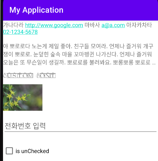 android:text="가나다라 http://www.google.com 마바사 a@a.com 아자카차타 02-1234-5678"